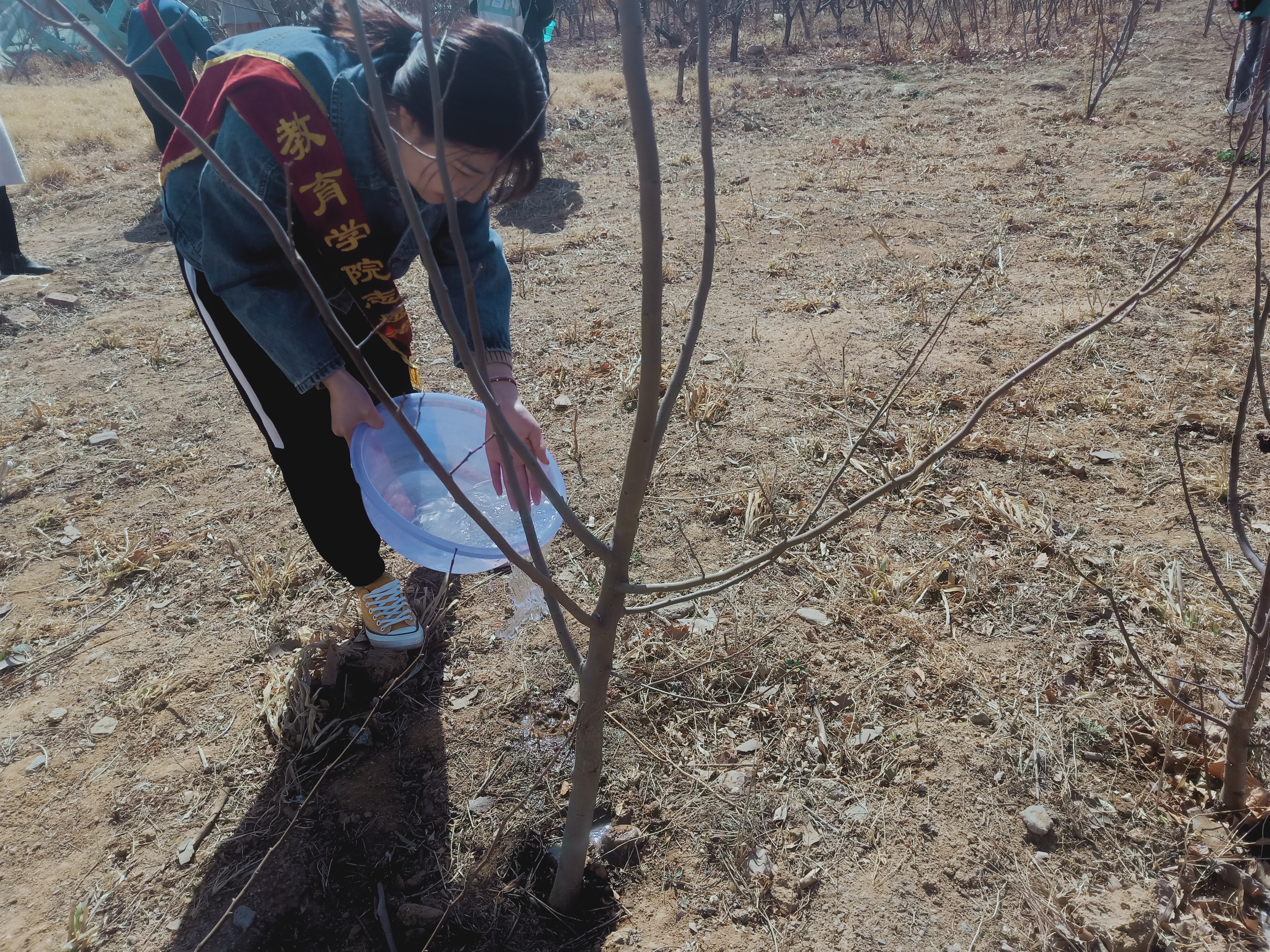 此次活动地点位于操场和篮球场两边的甬路。到达场地后,志愿者们两三人一组,并在青协负责人的带领下有条理地为植物进行浇水,捡拾绿化带中的垃圾、落叶。活动过程中同学们不怕辛苦、热情高涨,利用水盆、水桶等工具为大树浇水。活动现场到处回荡着同学们的欢声笑语。本次活动共有25名志愿者参加,浇树20余棵。